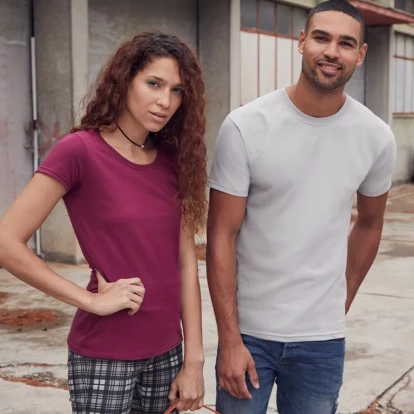 100% bawełny czesanej ring-spun, Bardziej miękkie w dotyku, Pranie w temperaturze 60 stopni Celsjusza, Ściągacz wokół szyi wykonany z bawełny/LYCRA® i podwójne przeszycia, Taśma wzmacniająca na ramionach z takiego samego materiału